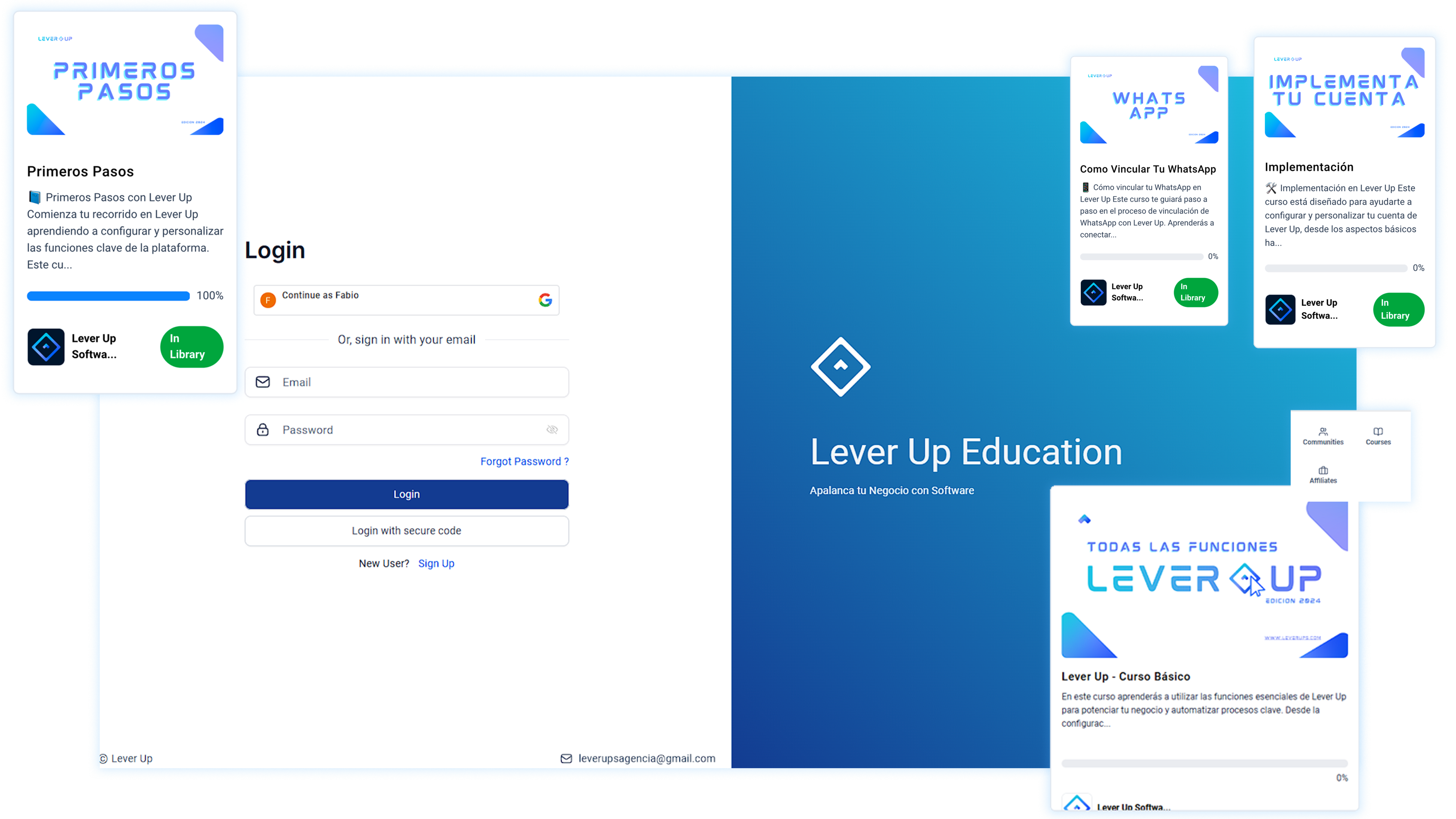 El proceso de onboarding es rápido y sencillo. Una vez te registres, nuestro equipo te guiará a través de los primeros pasos y te dará acceso a tutoriales que explican cada herramienta en detalle. En pocos días, tendrás tu negocio configurado y listo para operar en Lever Up.