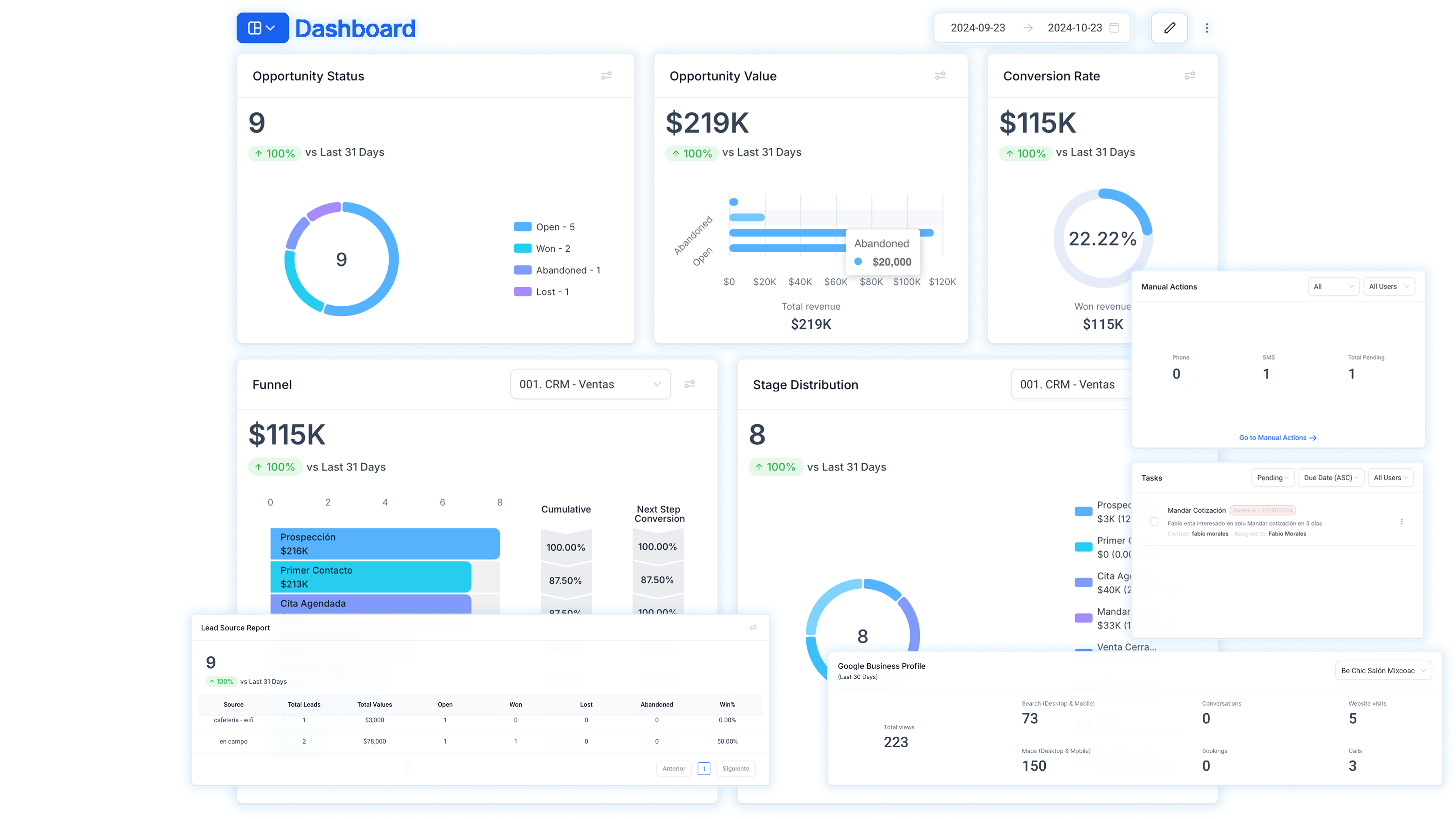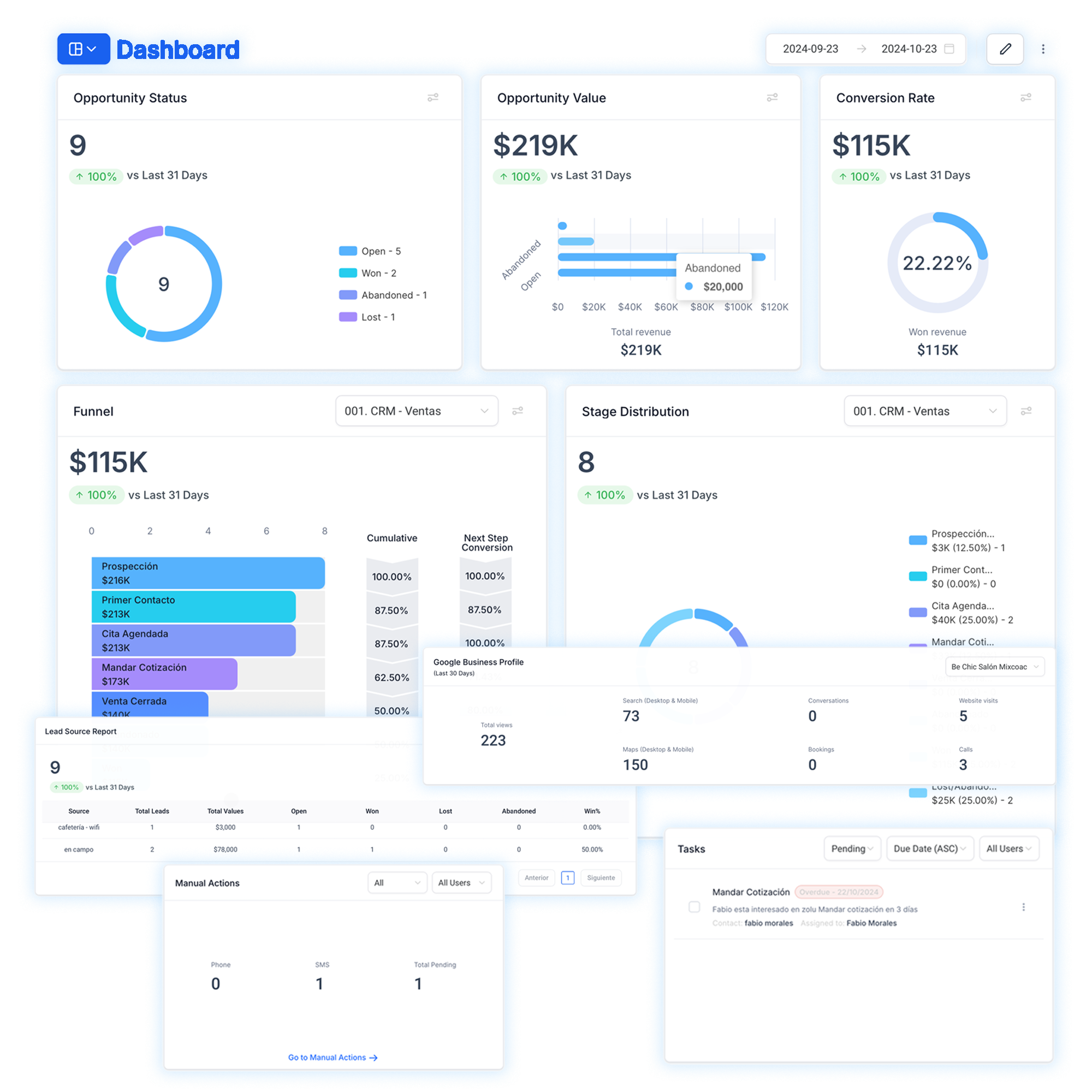 Acelera el éxito de tu negocio reduciendo el tiempo en tareas repetitivas, captar más clientes y optimizar tu comunicación en un solo lugar.